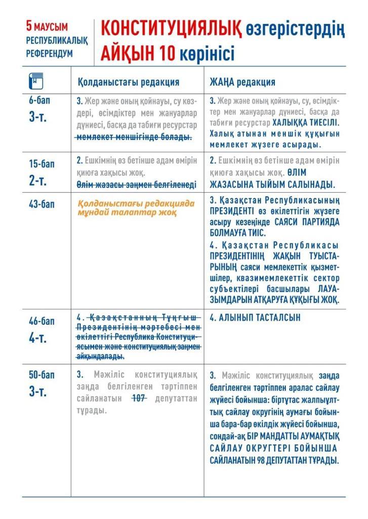 Конституцияляқ өзгерістердің Айқын 10 көрінісі